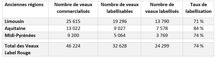 - Les veaux labellisables : veaux répondant aux critères du cahier des charges mais qui n'est pas commercialisé dans un point de vente engagé dans la filière Label Rouge
