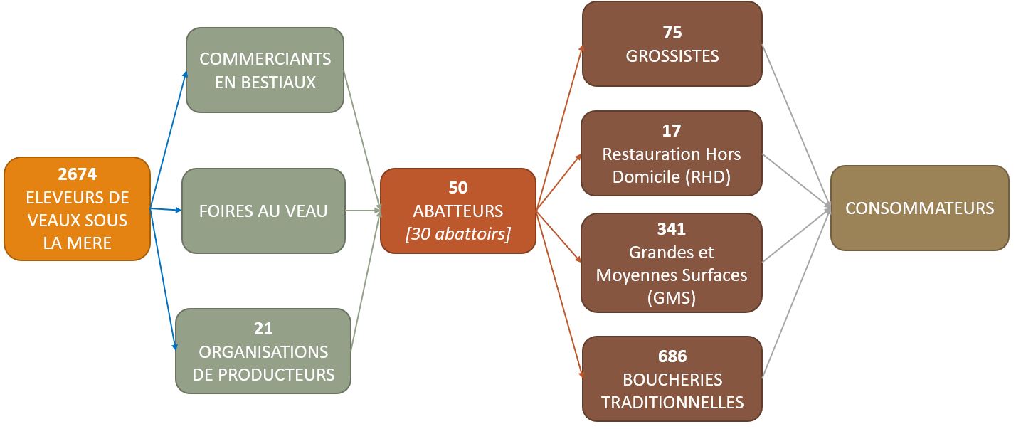 On distingue plusieurs catégories d'acteurs participant à la vie de la filière du Veau Élevé Sous La Mère.