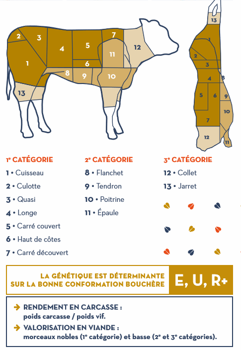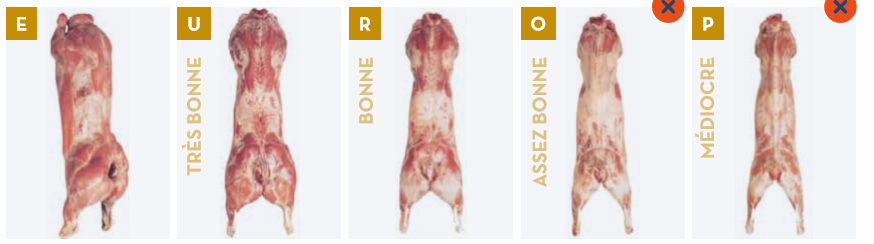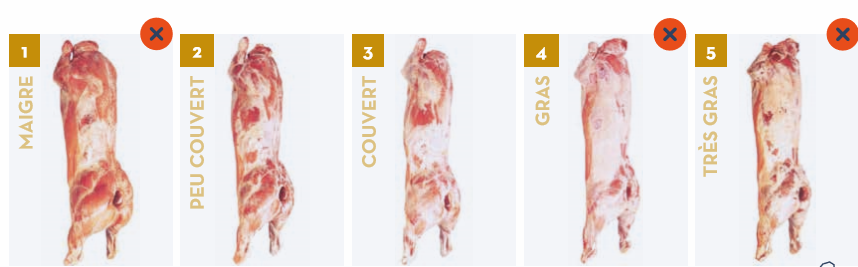 Lors de l’abattage, un classement est attribué à chaque carcasse, mettant une note sur la couleur, l’état d’engraissement et la conformation.